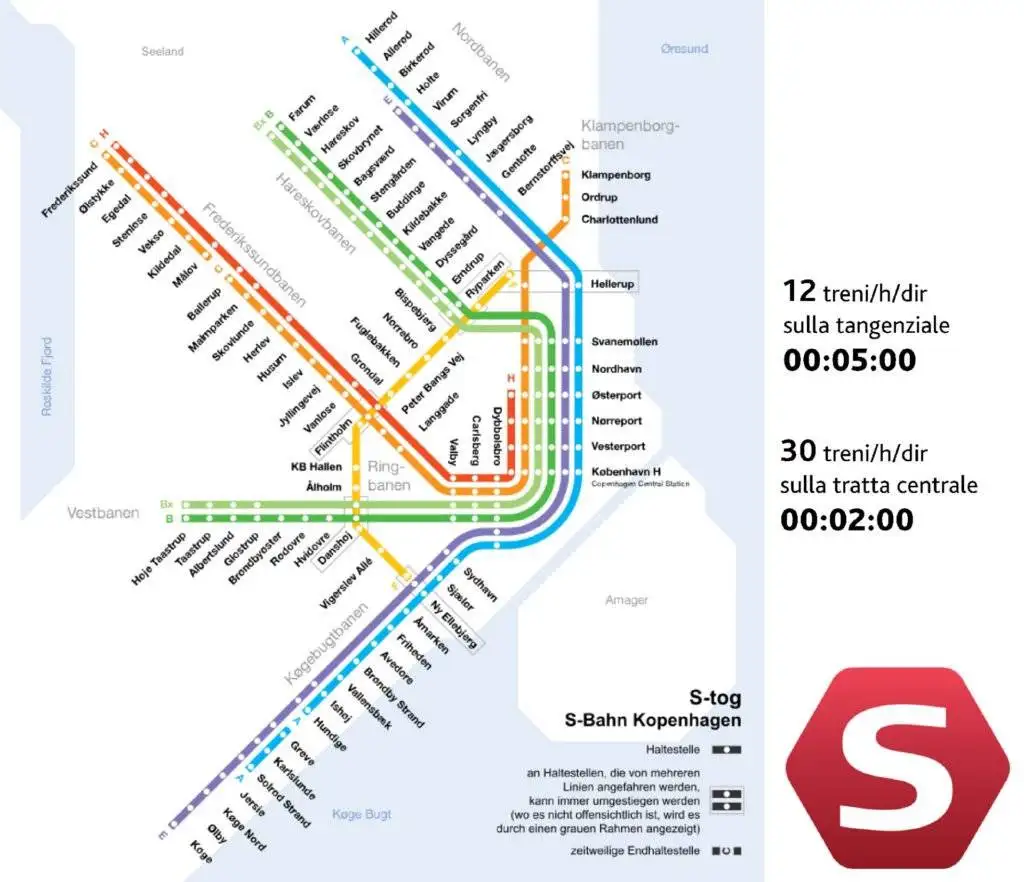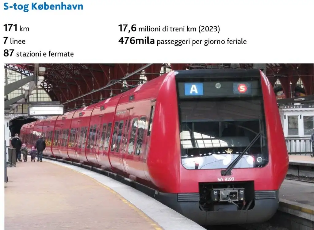 La rete suburbana della capitale danese ha, per anni, assolto a servizio metropolitano con la prima linea di metrò automatico attivata solo nel 2002. 7 linee su 171 km di impianti ferroviari con 87 tra stazioni e fermate. Con una produzione (2023) di poco meno di 18 milioni di treni km anno la domanda è di 476mila passeggeri per giorno feriale.