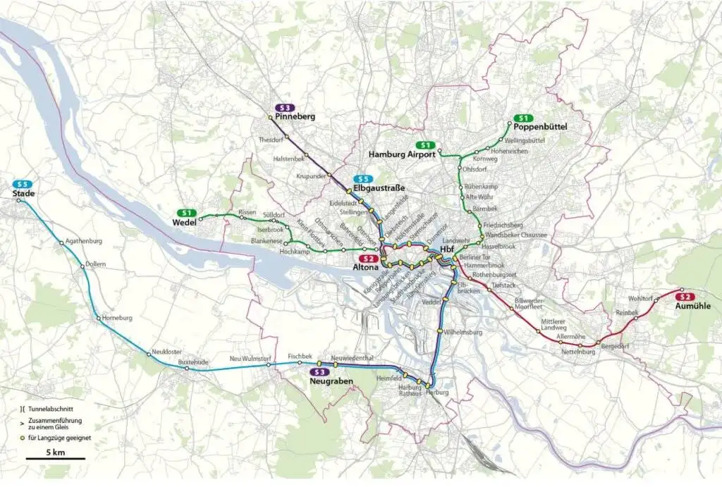 La rete celere della seconda città tedesca per importanza e numero di abitanti è completamente separata dal resto della rete ferroviaria. 4 linee su 144 km di impianti ferroviari con 70 tra stazioni e fermate. Con una produzione (2023) di poco meno di 2 milioni di treni km anno la domanda è la tra le più altre in Europa, un milione passeggeri per giorno feriale.