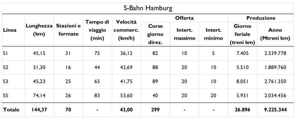 La più famosa tra le reti celeri tedesche conta 16 linee su 340 km di impianti ferroviari con 168 tra stazioni e fermate. Con una produzione (2023) di 31,4 milioni di treni km anno la domanda è di 1,45 milioni di passeggeri per giorno feriale.