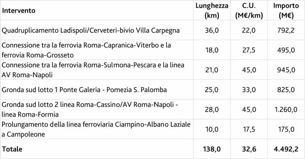 Parliamo di circa 100 km di nuova ferrovia a doppio binario (in via preliminare per il 30% a raso, 30% in viadotto e 40% in galleria tra naturale e artificiale) e 36 km di raddoppi: derivando da prezzario RFI 2024 dei costi parametrici, si perviene a importo complessivo di circa 4,5 miliardi così ripartiti: