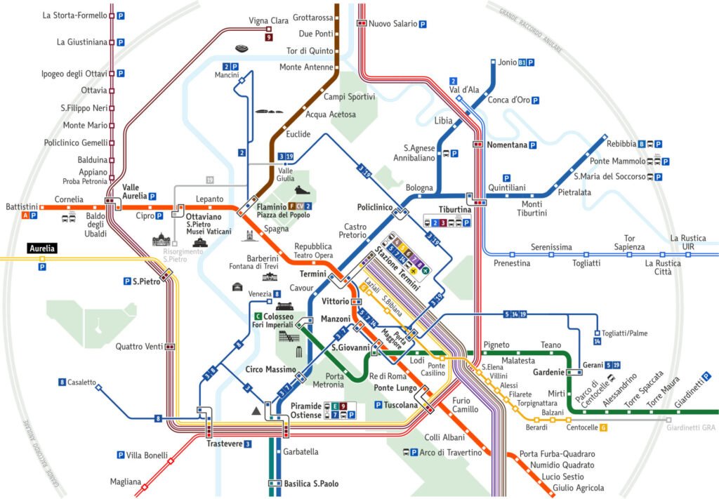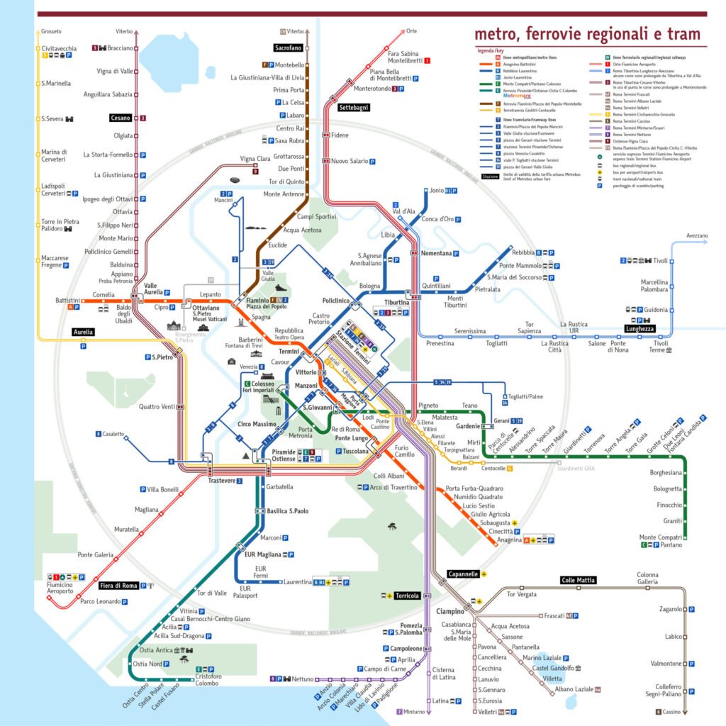Dopo Napoli e Milano, la terza proposta per una mappa iconica del trasporto rapido di massa non poteva non riguardare la città eterna. La nostra capitale se da un lato è perennemente in attesa dell’estensione della propria rete di metropolitane e tram, è manifestamente poco efficace nel valorizzare i servizi di cui è dotata.