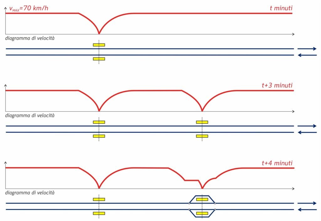 • l’adozione di “sottosezioni virtuali” consente di ridurre il distanziamento minimo effettivo fino a ~350 m rispetto ai 1.350 m del blocco automatico tradizionale.
